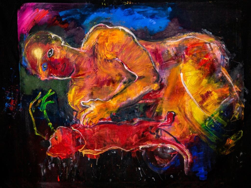 Обращаясь к темам телесности и чувственности, художница предлагает особый взгляд на невидимую подоплеку реальности. Большие размеры ее полотен, колористический взрыв выражают внутренний мир спонтанно, иррационально, показывают свободу художника от контроля рассудка и “common sense”.